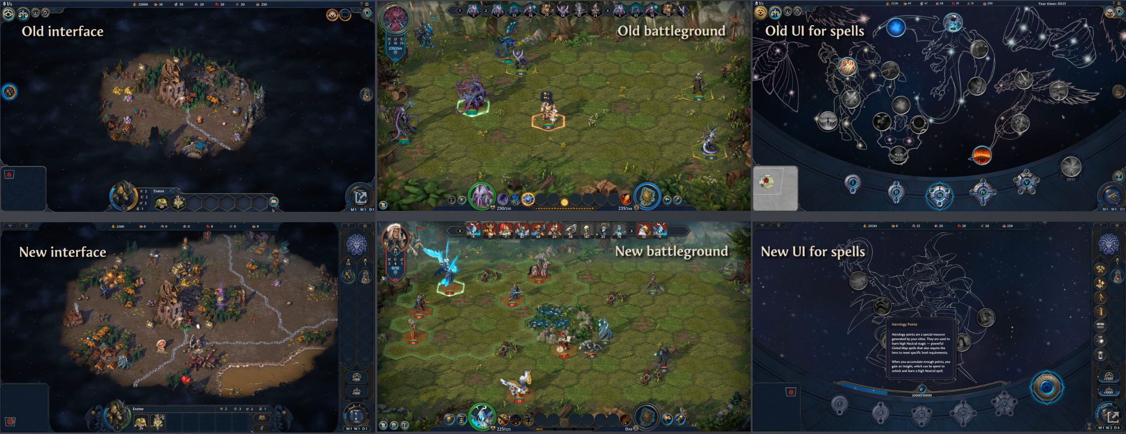 Изменился пользовательский интерфейс на карте, поле боя и в книге заклинаний, также было сделано много мелких косметических обновлений.